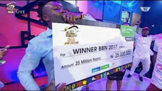 [Photos] #BBNaija 2017 WINNER!! Efe Poses With His N25m BBNaija Prize. Youngfeez April 09, 2017 0 Comment Entertainment News See the moment BBNaija winner Efe the warri guy received his prize of N25m. Congrats to him More photos below : SHARE THIS